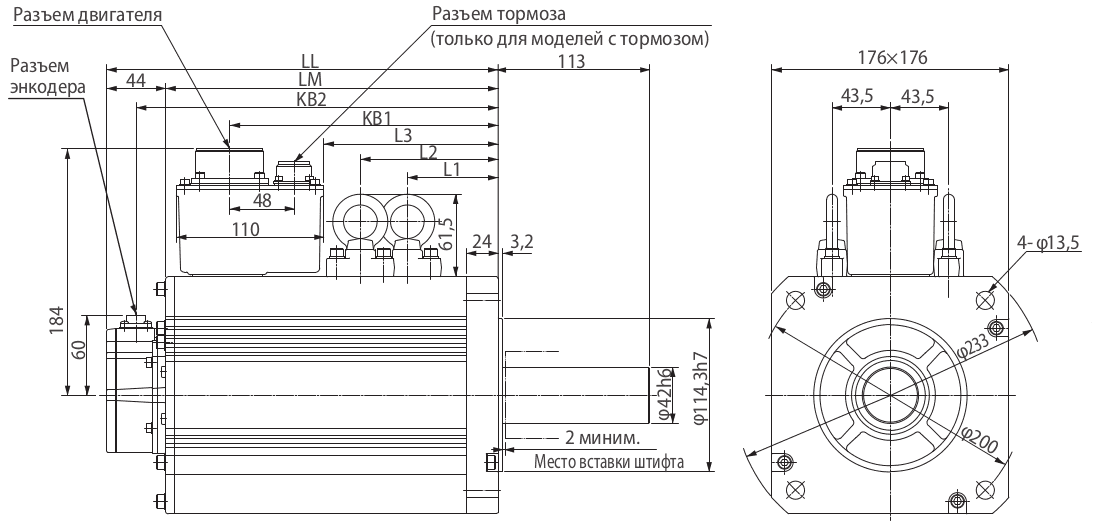 | Постоянная момента, Н·м/А | 1,54 | 1,84 | 2,10 | |
